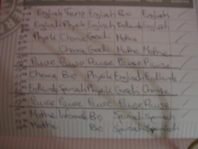 Die leeren Felder kommen daher das ich nicht weiss was ich da habe. Ich verstehe an der Stelle den Stundenplan nicht. Ich muss warten bis Arquimedez wieder da ist damit er mir das übersetzen kann.